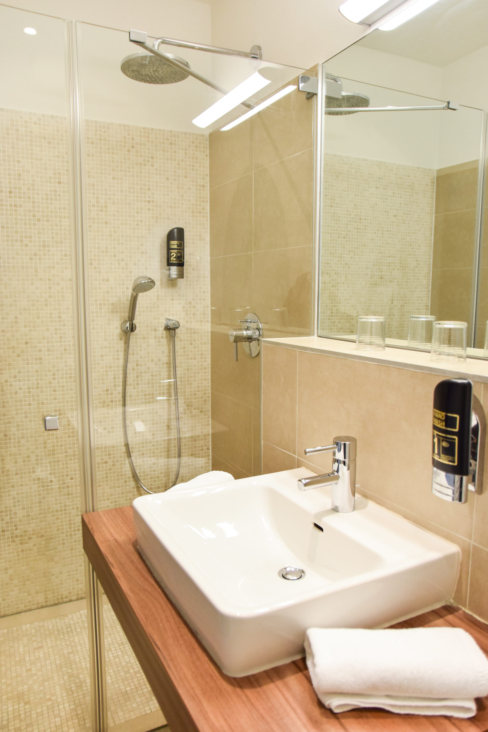XL-Glasduschkabine, Regenbrause, Handtuch-Heizkörper, Haarfön, XL-Spiegel